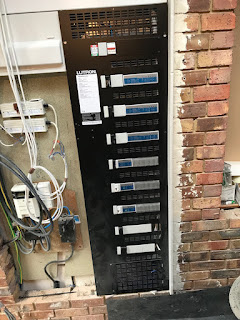 We have been very busy planning and preparing five (!) installations. This is one of them, undergoing first phase of installation. Whole house audio, TV based media room and projector based conema room with Kef THX Ci series speakers, motorised drop down screen and Epson projector.